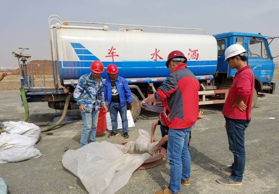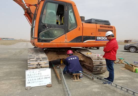 驗收小組現場檢測山皮石墊層固體體積率
